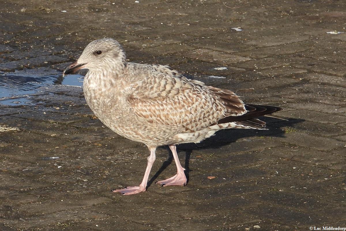 | Zilvermeeuw (Larus argentatus) (1e kalenderjaar) Lauwersoog - Haven, 10 december 2021 |